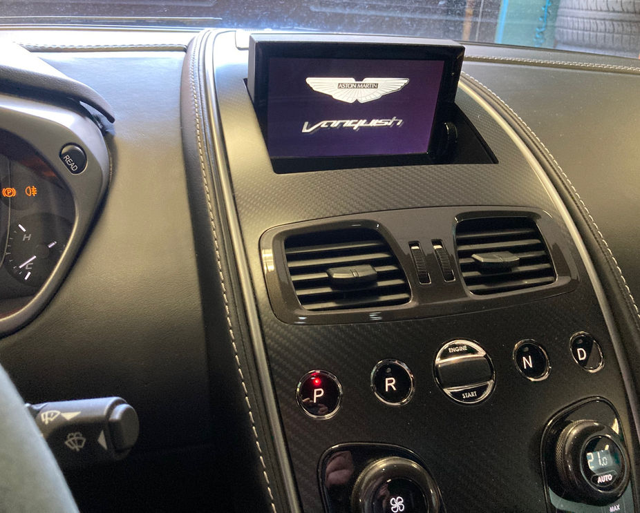 Intégration d'un ensemble Apple Carplay & Android Auto + Caméra Avant Multi-Angles + Caméra de recul + Ecran Tactile HD + Inteface Audio MOST sur Aston Martin Vanquish S de 2005 (Vanquish I) :