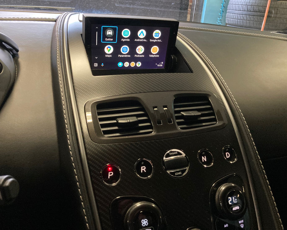 Intégration d'un ensemble Apple Carplay & Android Auto + Caméra de recul + Récupération des commandes d'origine (Façade / Volant / Joystick) sur une Aston Martin Virage :