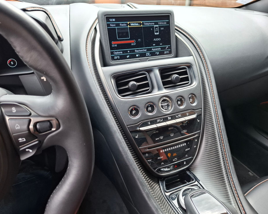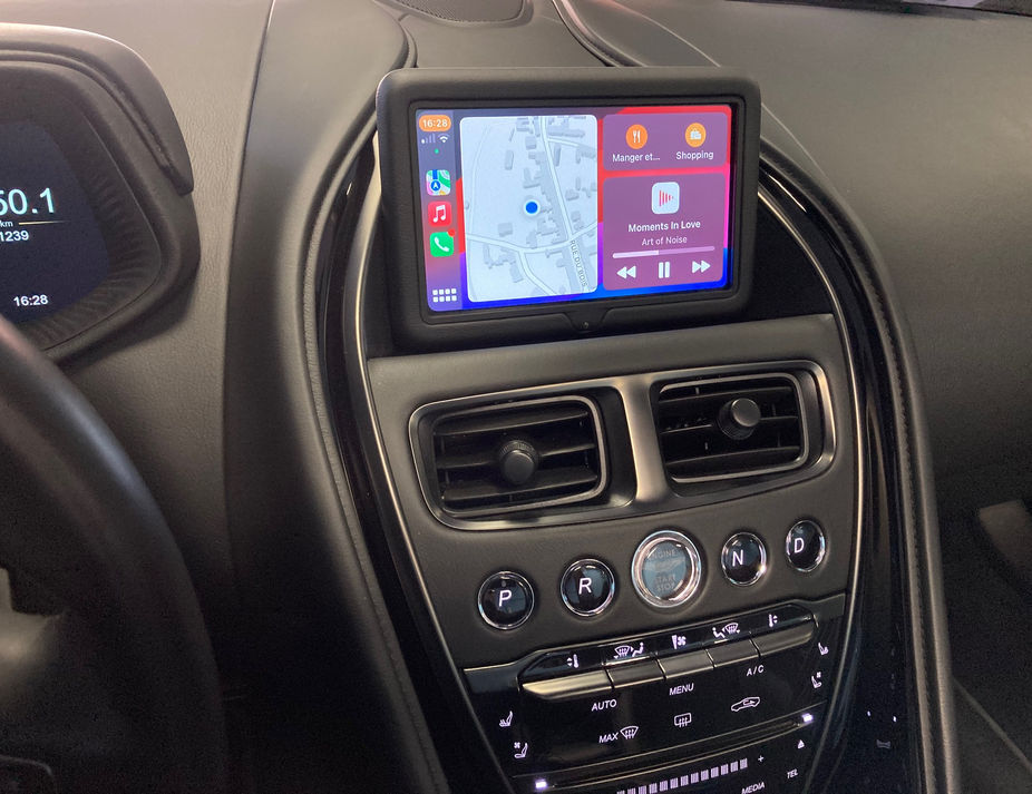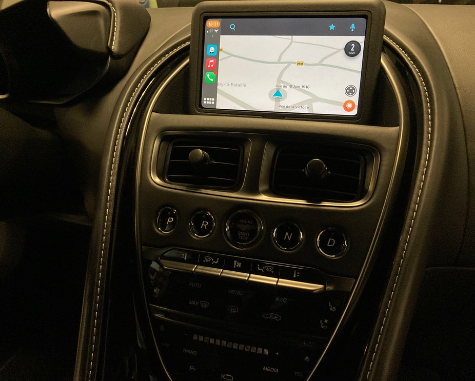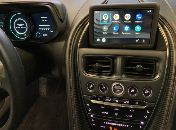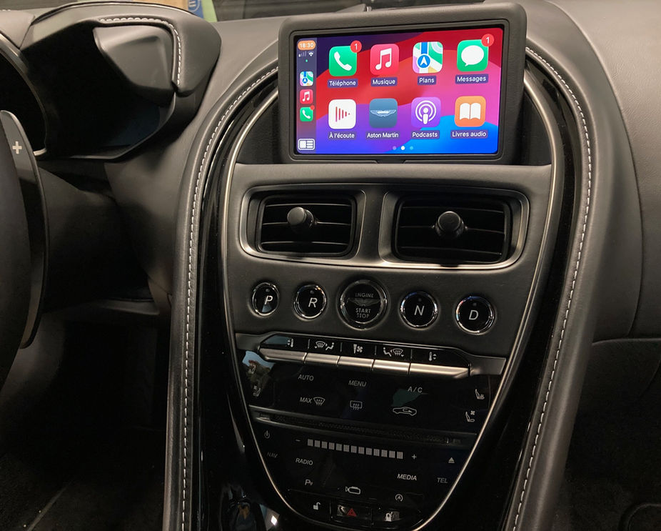 Exemple d'installation réalisée par GO FAST SARL sur Aston Martin DB11 V8 (Apple Carplay + Android Auto GEN.2) et interfacée à 100% sur le système audio / GPS d'origine :