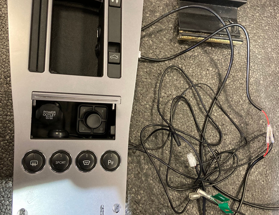Intégration d'un ensemble Apple Carplay & Android Auto + Caméra de recul + Caméra Avant Multi-angles + Ecran HD + Cuvelage de cendrier sur mesures sur une DB9 de 2007 (système Volvo Based sans entrée Aux In) :
